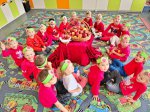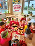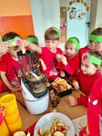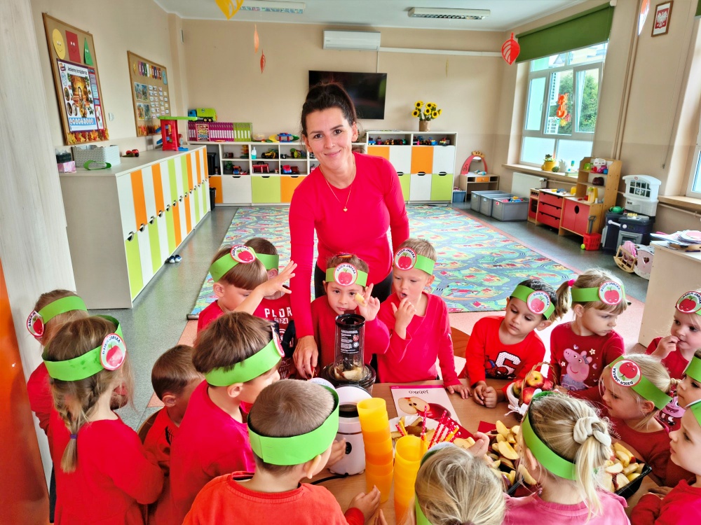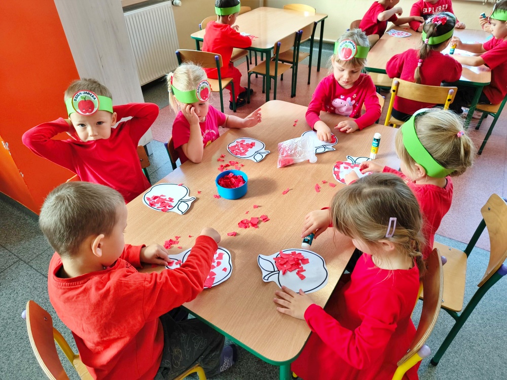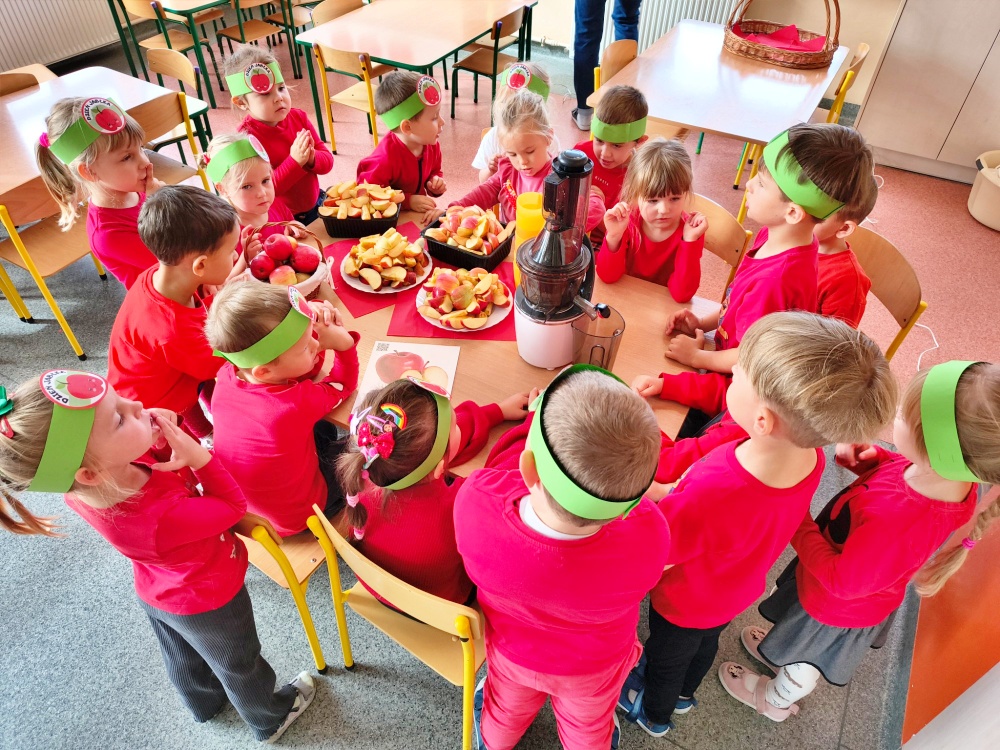 Tego dnia dzieci przyszły ubrane na czerwono, aby podkreślić charakter zdrowego i smacznego owocu.
