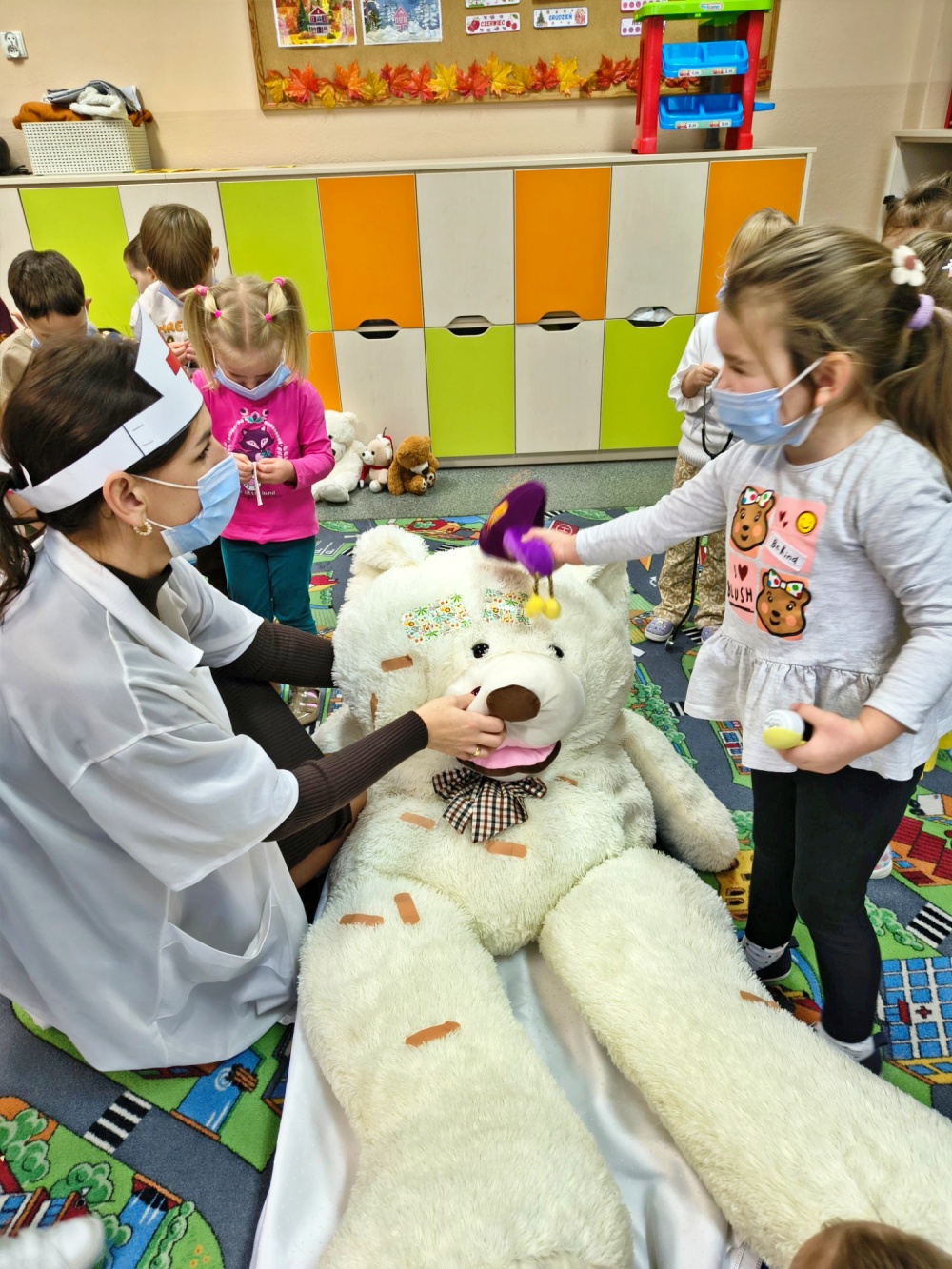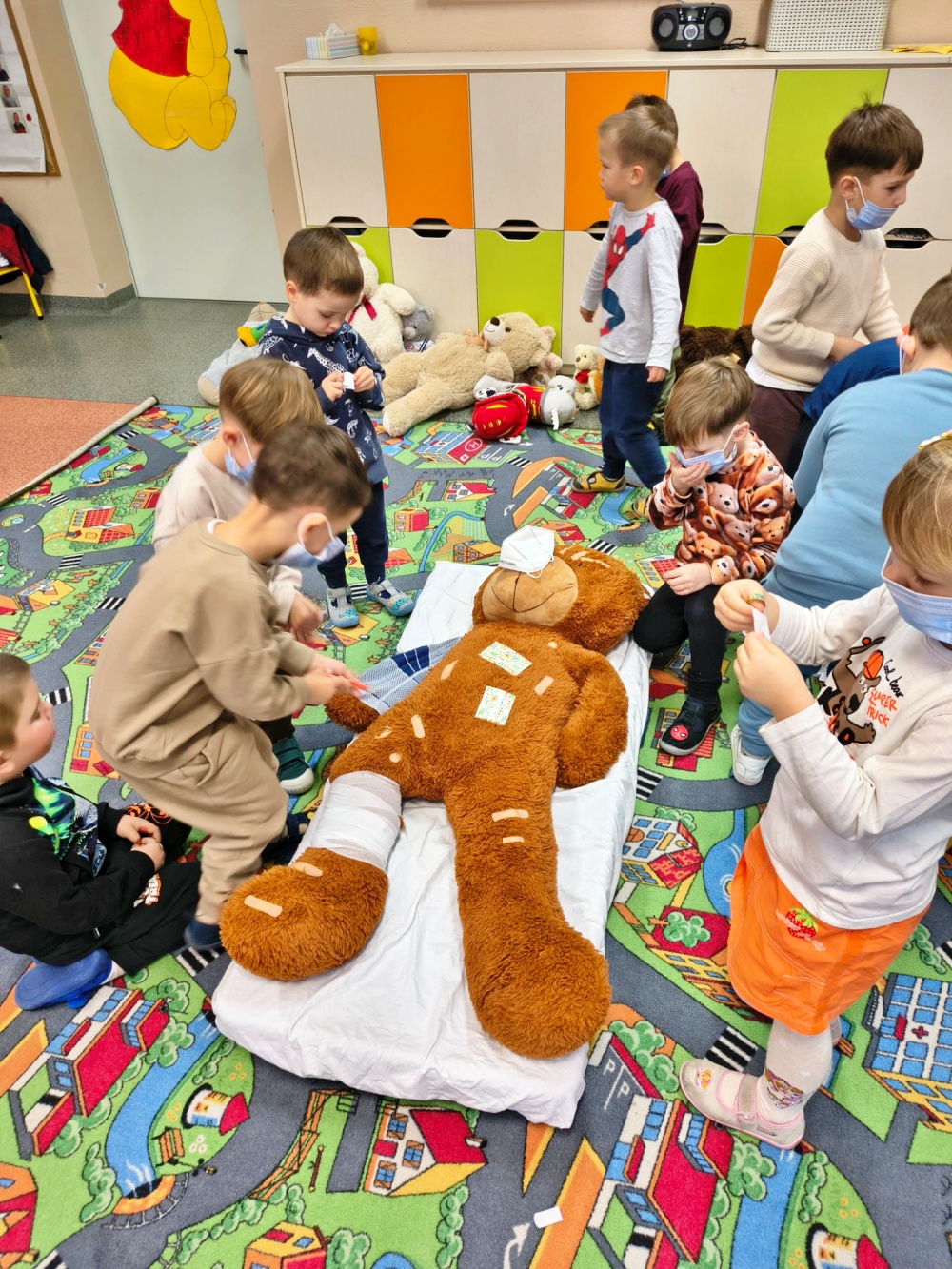Tego dnia przedszkolaki zamieniły się w małych doktorów, a ich ukochane misie stały się pacjentami. Podczas wspólnej zabawy dzieci utrwaliły sobie numer alarmowy 112, a także poznały podstawowe metody udzielania pomocy osobom poszkodowanym i chorym.