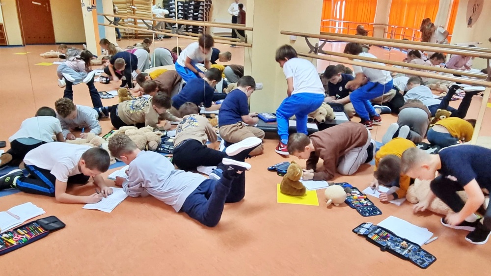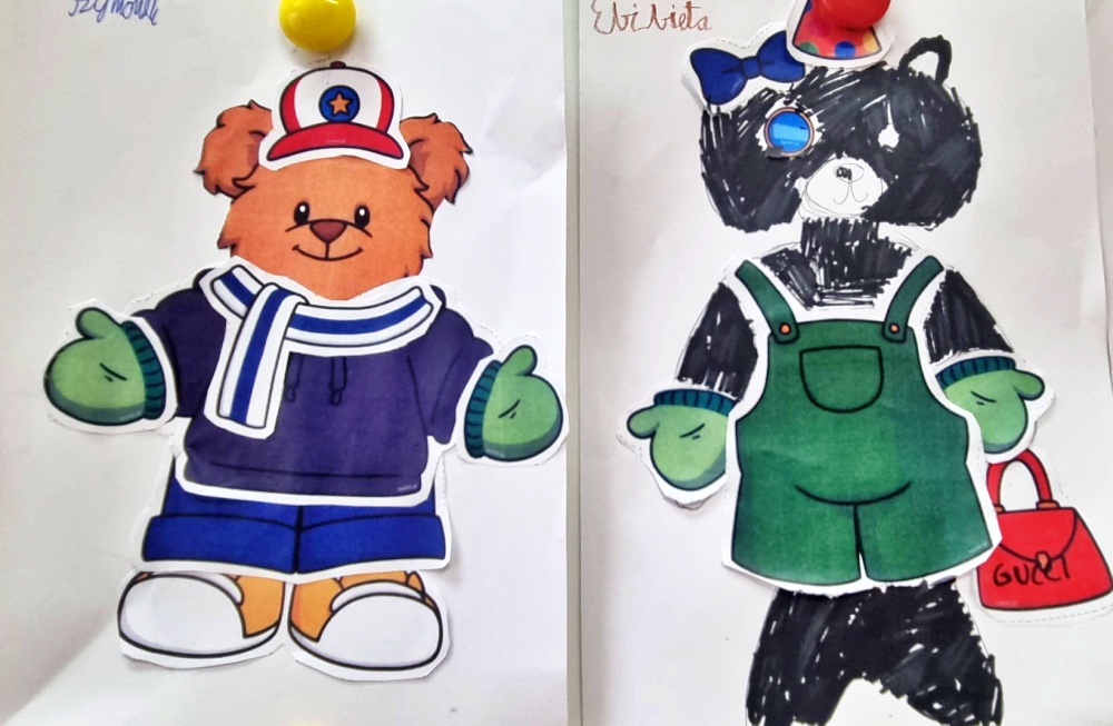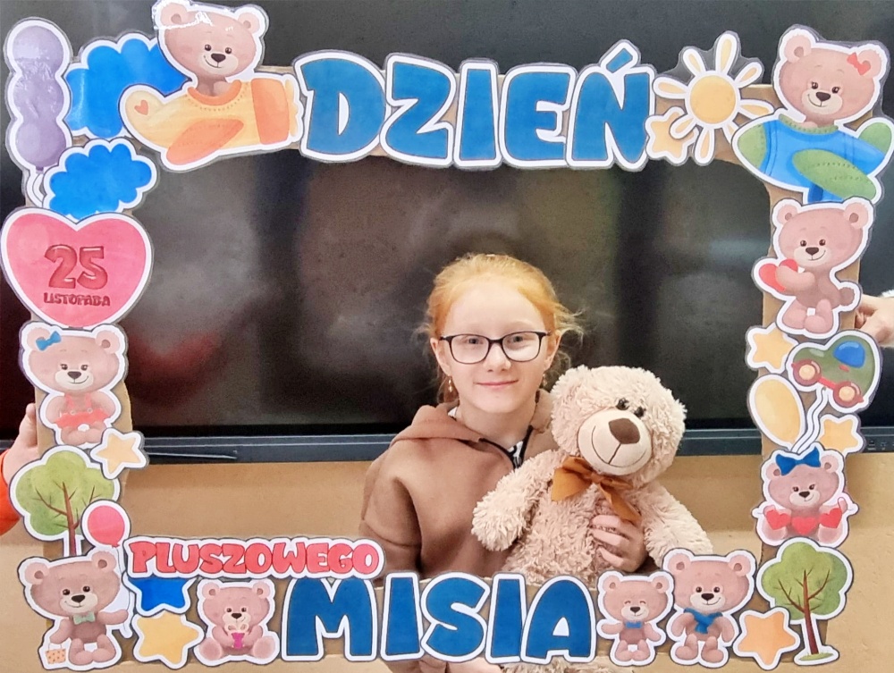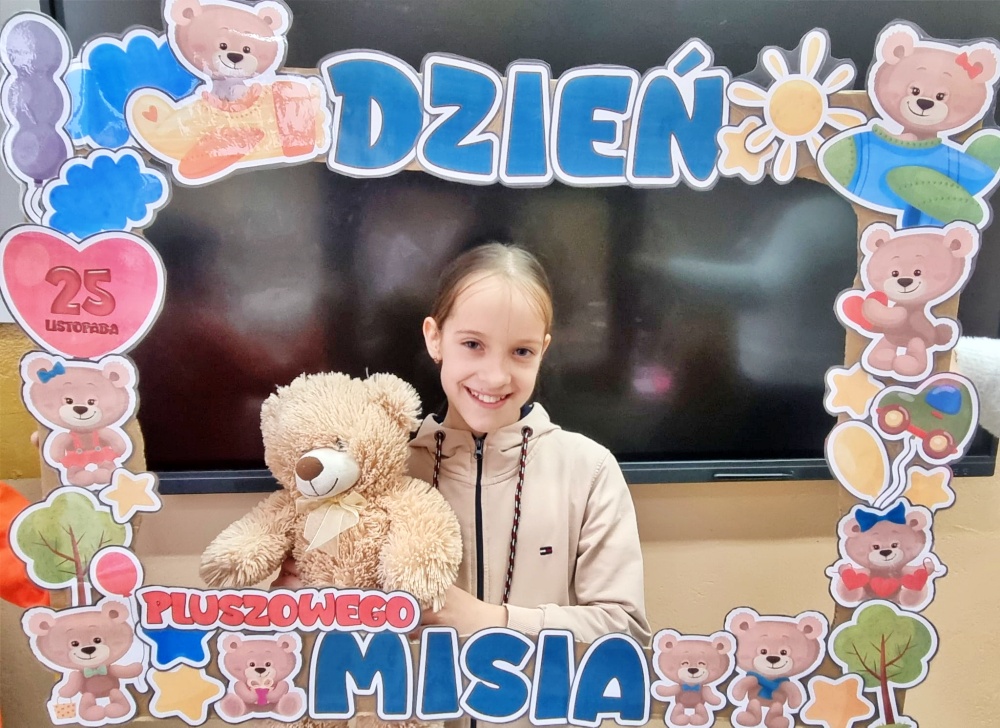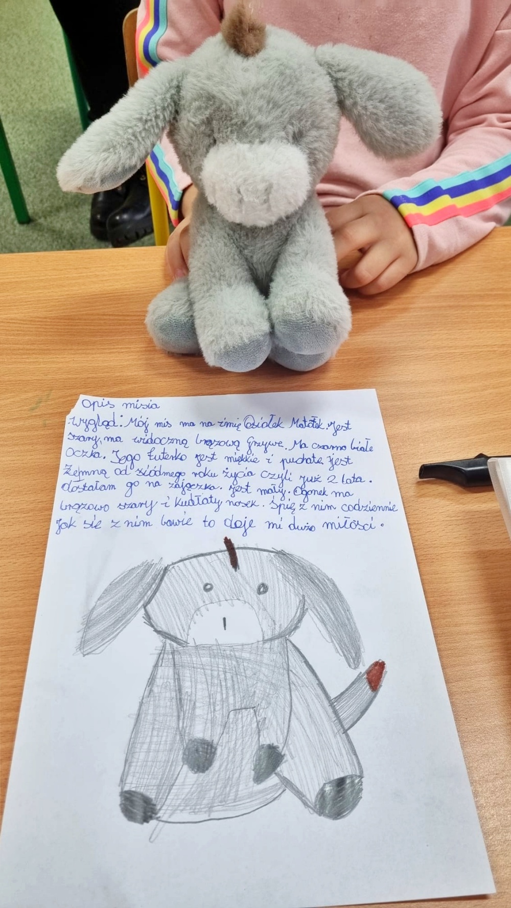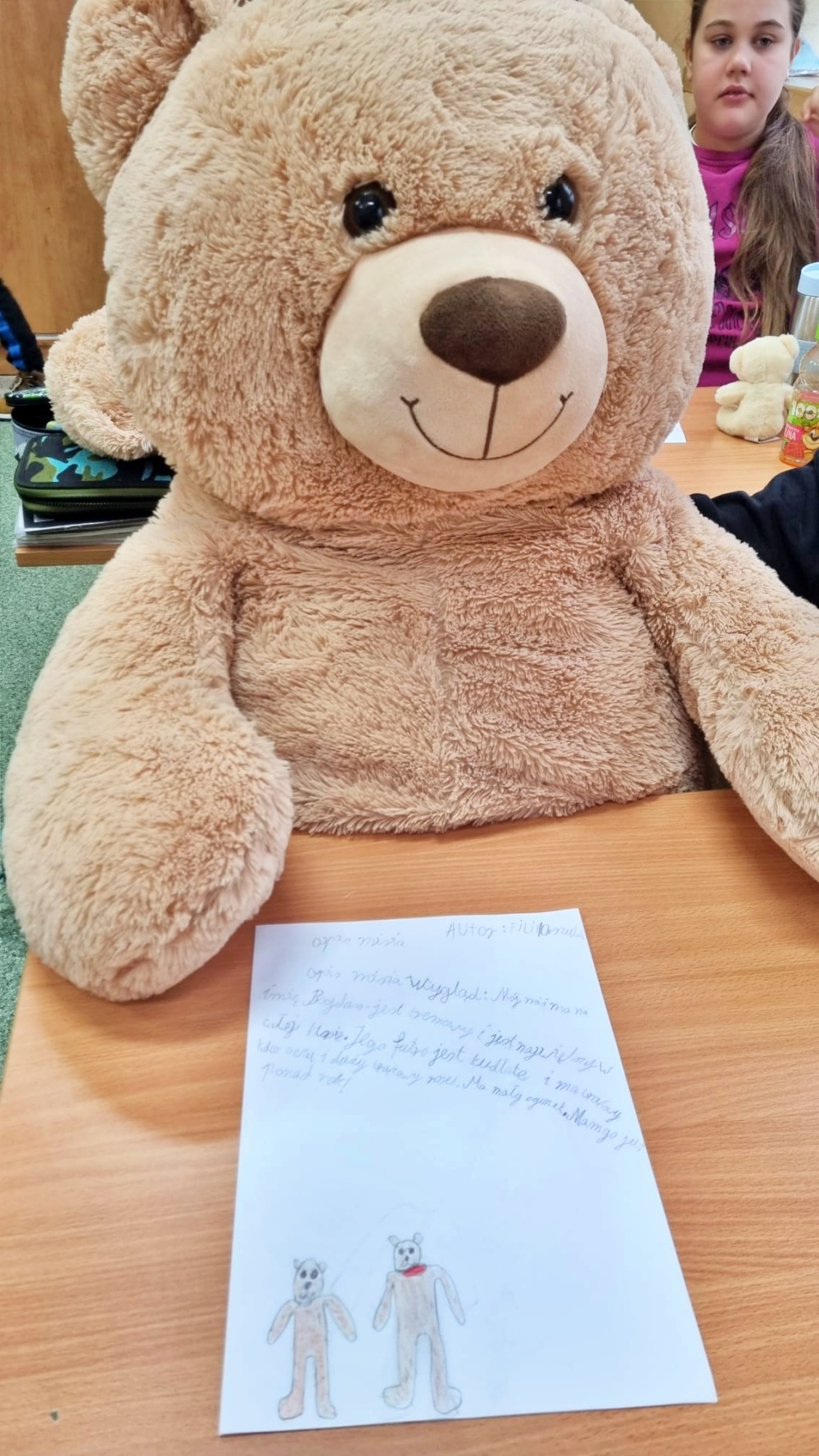Podczas zabawy doskonaliliśmy wiele umiejętności: pracę w grupach, podczas której wcieliliśmy się w projektanta mody, a że mamy już doświadczenie, to wyszły super misie :), ćwiczyliśmy umiejętności językowe, bo tworzyliśmy opis naszego misia oraz jego portret. Było misiowe dyktando biegane - dużo ruchu, zabawy, ale też skupienia, bo każdy pisał co innego, i oczywiście ćwiczyliśmy ortografię ;). Na koniec sesja fotograficzna z misiem. To był pluszowy i radosny dzień.