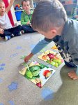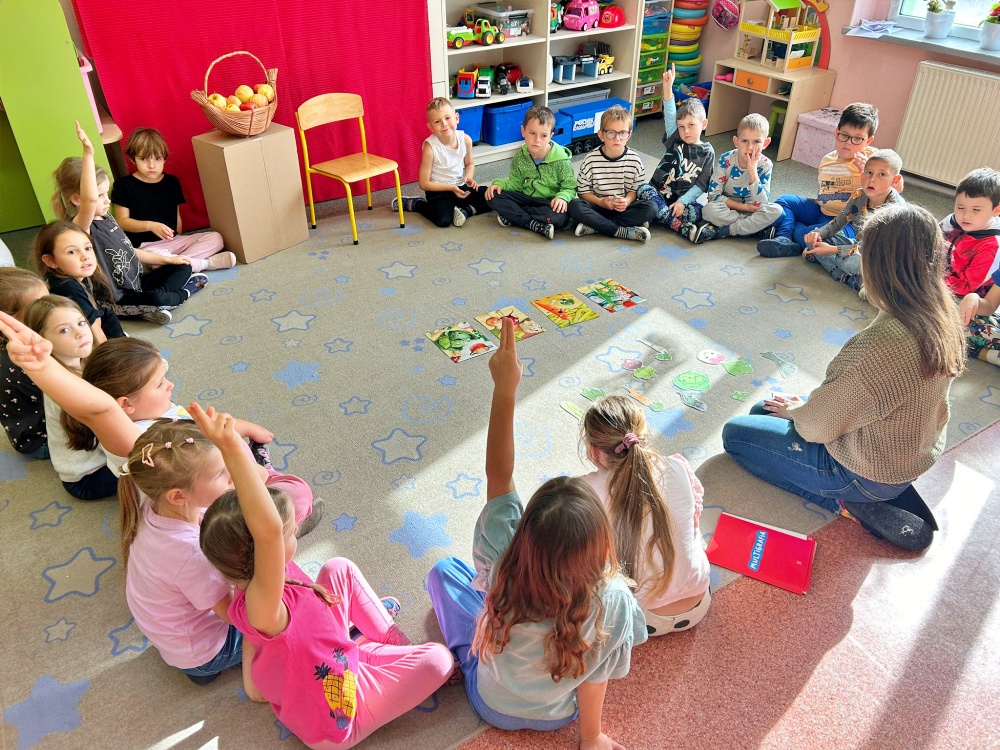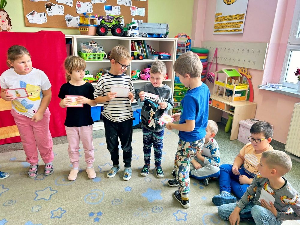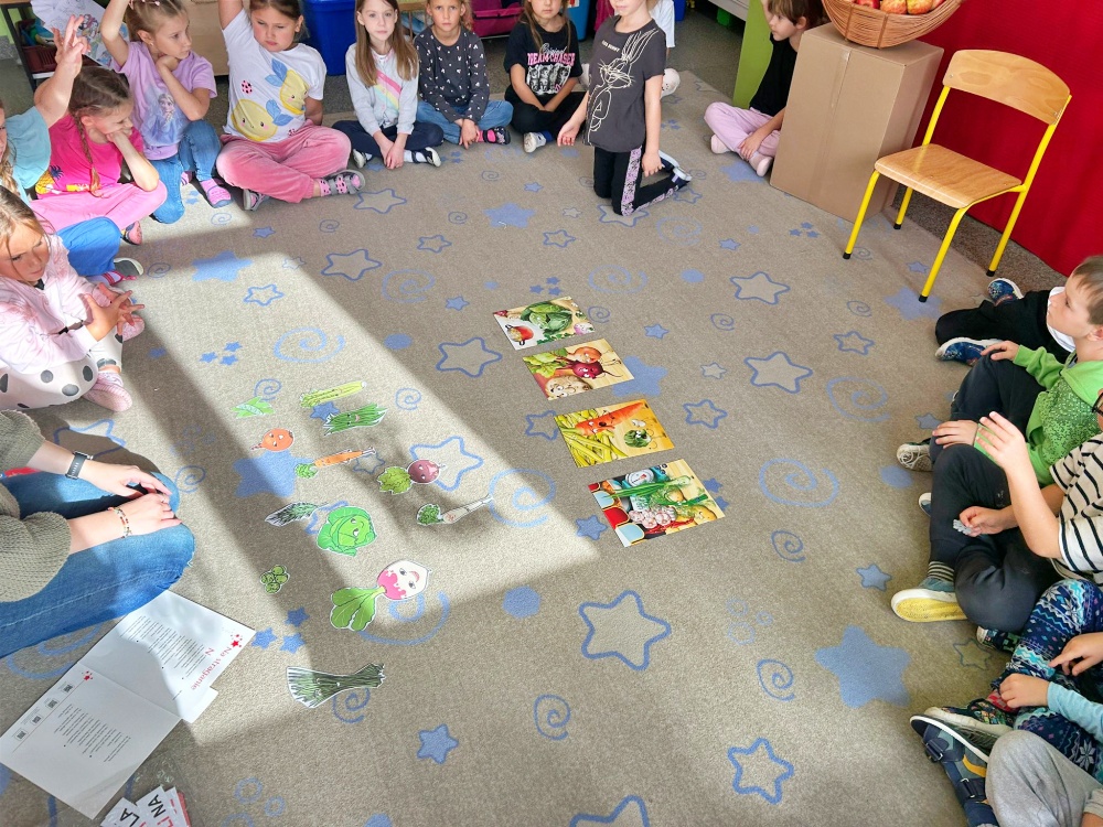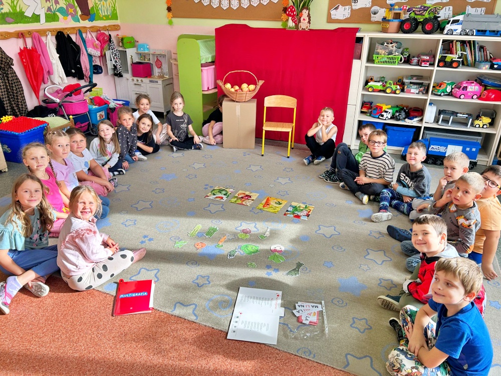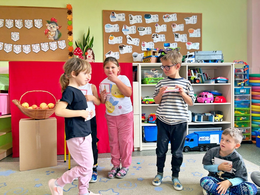Brały udział w wesołych tematycznych zabawach i rozmowach o zdrowym odżywianiu. Dzieci przypomniały sobie o tym, jak ważna jest obecność owoców i warzyw w codziennej diecie - to był pełen kolorów i zdrowia dzień.