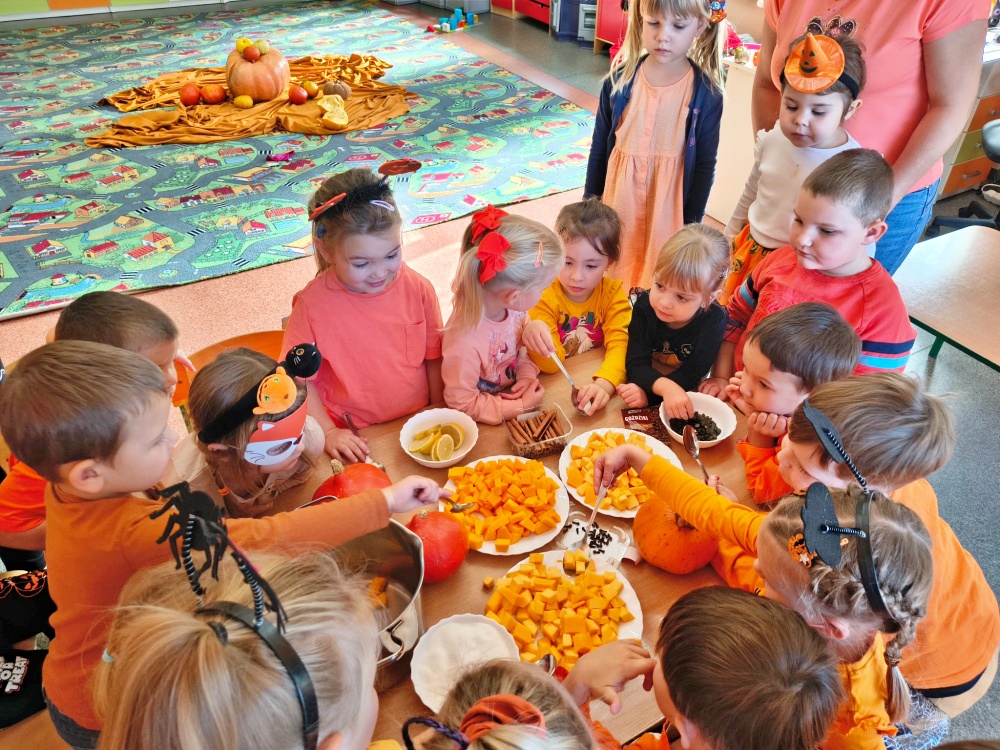 Wszystko za sprawą Święta Dyni, które wprowadziło dzieci w radosny, jesienny nastrój. Przedszkolaki przyszły ubrane w pomarańczowe stroje i z entuzjazmem uczestniczyły w dyniowych zabawach.