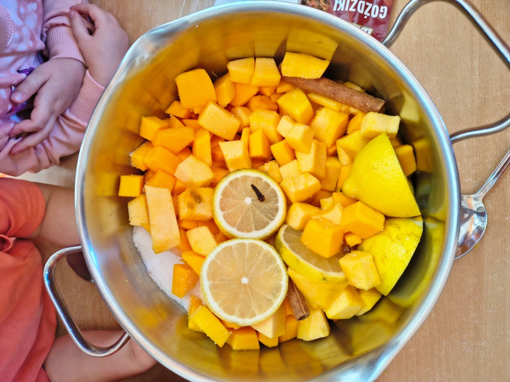 W ramach sportowych emocji przedszkolaki pokonywały tor przeszkód, ćwicząc zwinność i równowagę. Na zakończenie dnia czekała na wszystkich prawdziwa niespodzianka – dzieci samodzielnie przygotowały kompot dyniowy, który okazał się nie tylko zdrowy, ale i bardzo smaczny!