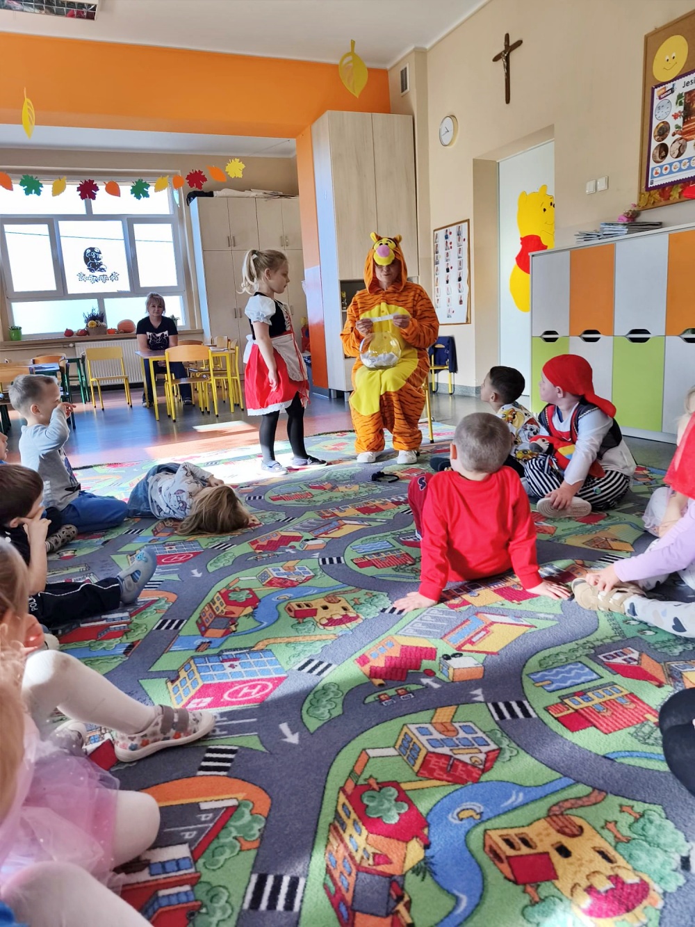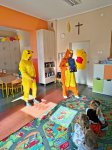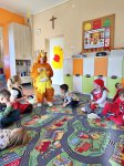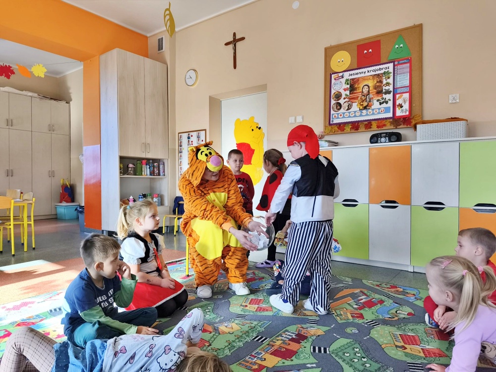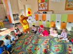 Gościliśmy panie z Gminnej Biblioteki Publicznej w Gogolinie, które wystąpiły w strojach Pikachu i Tygryska. Przeczytały nam bajkę „Śpiąca Królewna”, przygotowały ciekawe zagadki i zaprosiły do wspólnego tańca przy piosence „Krasnoludek”.