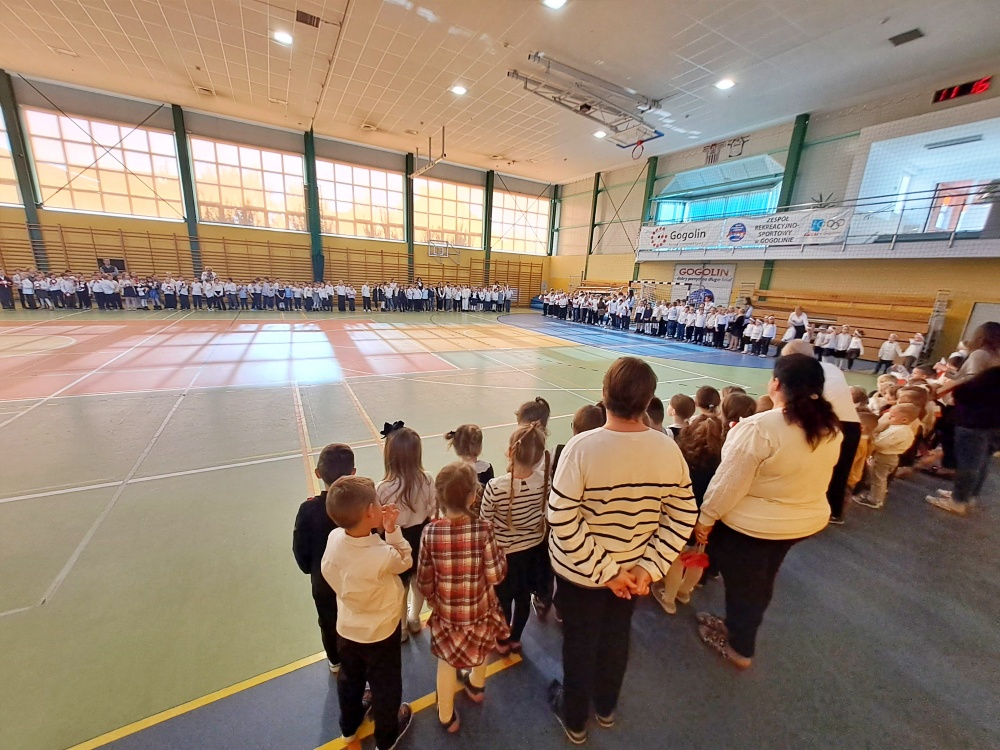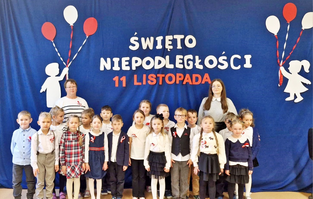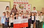 Dzieci z oddziałów przedszkolnych wzięły udział w akcji "Szkoła do hymnu" razem ze swoimi starszymi kolegami i koleżankami z klas 1 - 3.