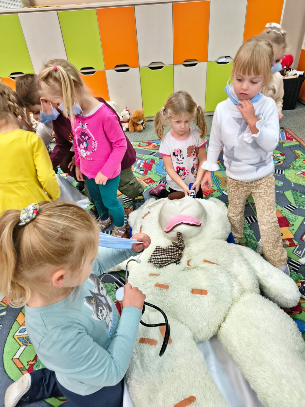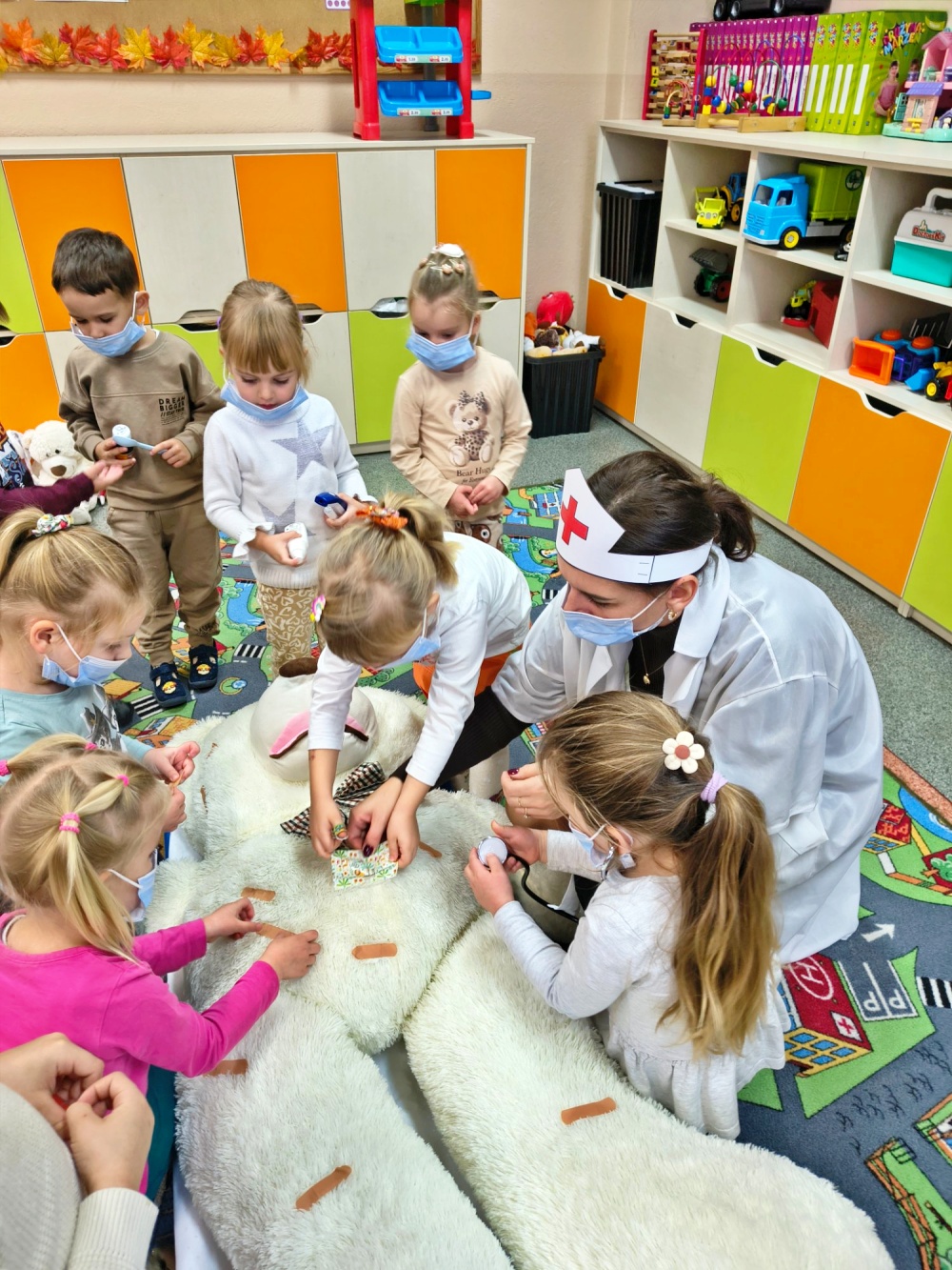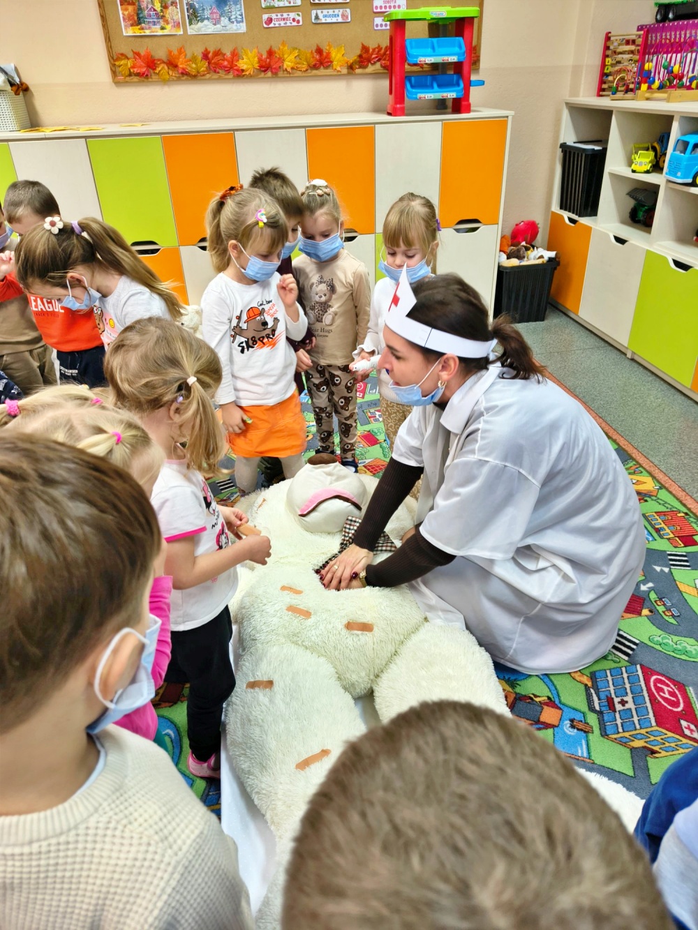 Tego dnia przedszkolaki zamieniły się w małych doktorów, a ich ukochane misie stały się pacjentami. Podczas wspólnej zabawy dzieci utrwaliły sobie numer alarmowy 112, a także poznały podstawowe metody udzielania pomocy osobom poszkodowanym i chorym.