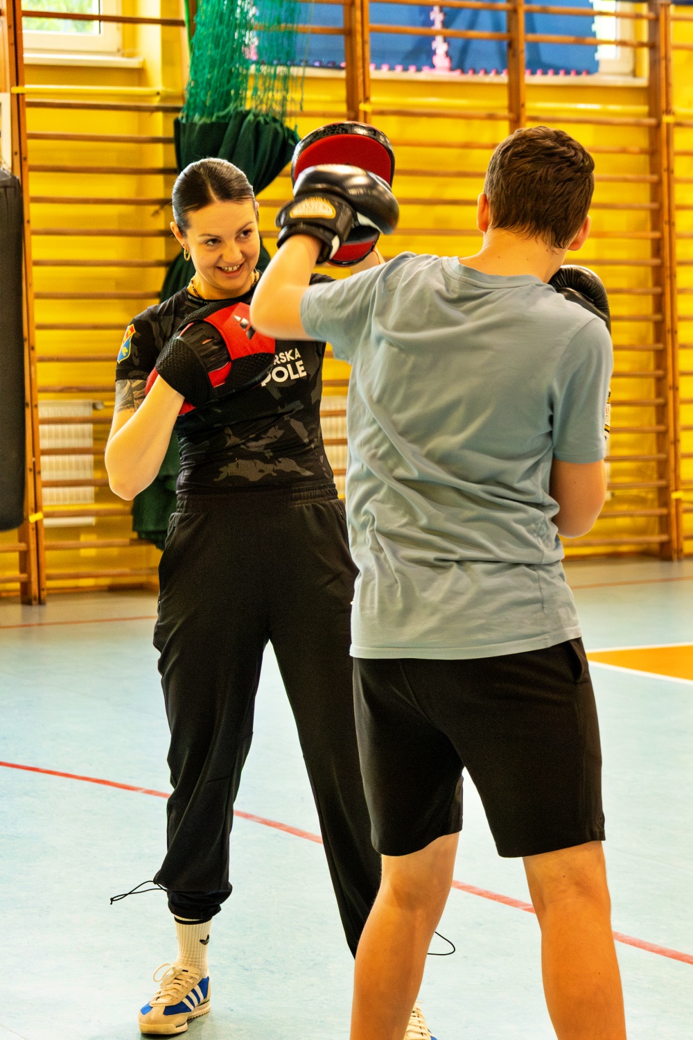 Dzięki zaproszeniu nauczycielek, Basi Nicpoń i Justyny Taboł, odwiedzili nas wyjątkowi goście – Ewelina Bejca i Kevin Karol z klubu bokserskiego Lewy Prosty Fight Club.