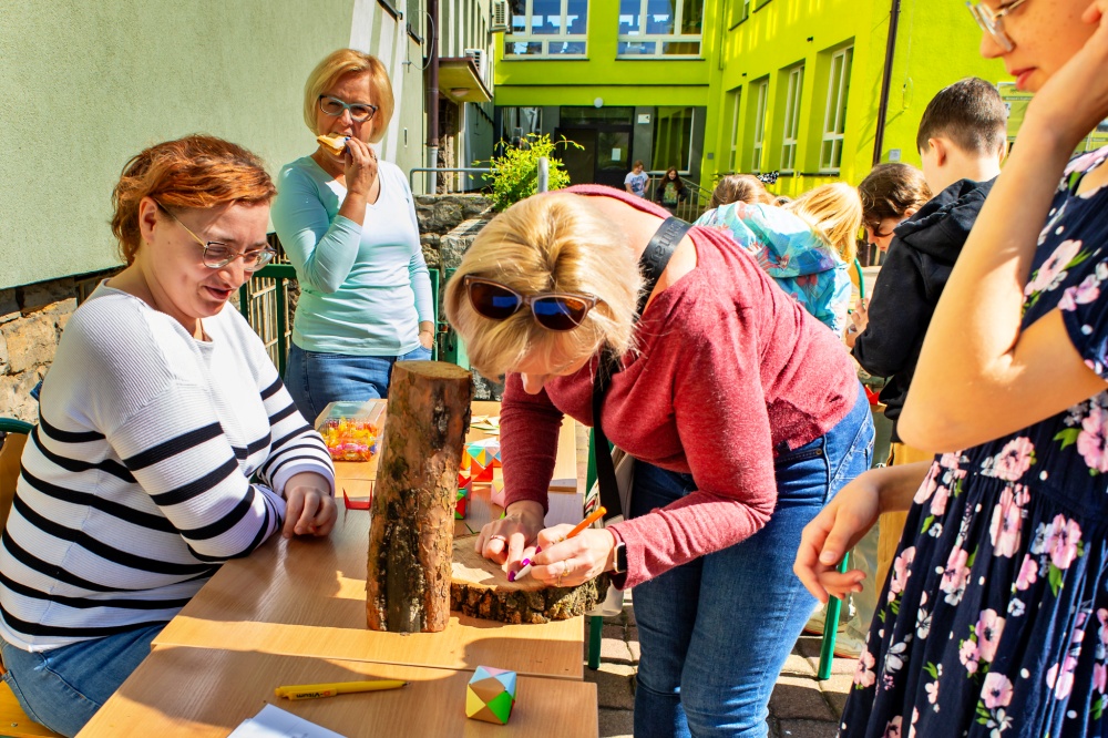Różnorodność atrakcji sprzyjała energii, przestrzeń znaleźli artyści, sportowcy, przyjaciele, smakosze, a przede wszystkim ci, którzy chcieli się dobrze bawić! Były wyzwania ekologiczne w grze terenowej, spotkaniach pod namiotem Czystego Regionu, przy stoliku matematycznym czy podczas zabaw językowych po angielsku, niemiecku i francusku... Rozgrywki sportowe udowodniły, że nasi uczniowie lubią aktywnie spędzać czas - rozegrali mecze siatkówki, piłki nożnej, badmintona, tenisa stołowego oraz ziemnego, był też czas na wyzwania skakanki czy biegu z przeszkodami. Można było zachwycić się podczas pokazu różnorodnych talentów naszych uczniów, smacznie zjeść, kupić kwiatka doniczkowego czy zrobić bransoletkę.