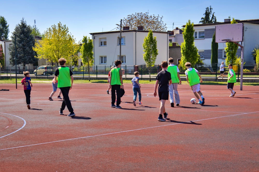 Gospodarzami wydarzenia byli uczniowie z VI b i VII, a wraz z wychowawczyniami - Małgorzatą Góralską oraz Anną Kubus, w pomoc włączyli się też nauczyciele czy dziewczęta z klasy V b. Wymarzona pogoda sprzyjała aktywnościom, a działo się mnóstwo w różnych miejscach szkolnego podwórka czy hali!!!