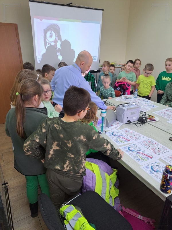 Podczas tychże poszukiwań uczniowie odwiedzili Pana Burmistrza i pracowników urzędu. Dzieci wręczyły symboliczny gaik, zaśpiewały wiosenną piosenkę oraz przekazały wcześniej przygotowaną kartkę z wiosennymi życzeniami.